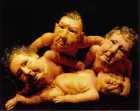 Auf einer Empore im Publikum die ferne Muse. Sie singt von verlorenem Kinderglück, ewiger Liebe, holden Träumen. Auf der Bühne in Altarhöhe ein Stückchen Kleingarten. Darin hausen die „Zwerge“ - fränkische Kleingeister mit Säuglingskörpern und früh vergreisten Köpfen, von Fresslust und Kummerspeck gezeichnet. Sie lauschen dem Gesang und beginnen zu klagen... Ein skurriles Oratorium vom Zwergenhaften in unseren Herzen und von der leisen Sehnsucht nach wahrhaft menschlicher Größe.