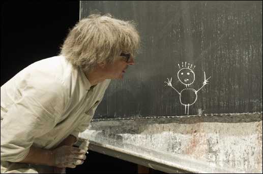 An astonishing performance, played out between dark and light, back and front, give and take. A black board and a bucket of white paint – nothing more is required for a delightful journey into the world of painting and the discovery of how opposites join together to make the world.